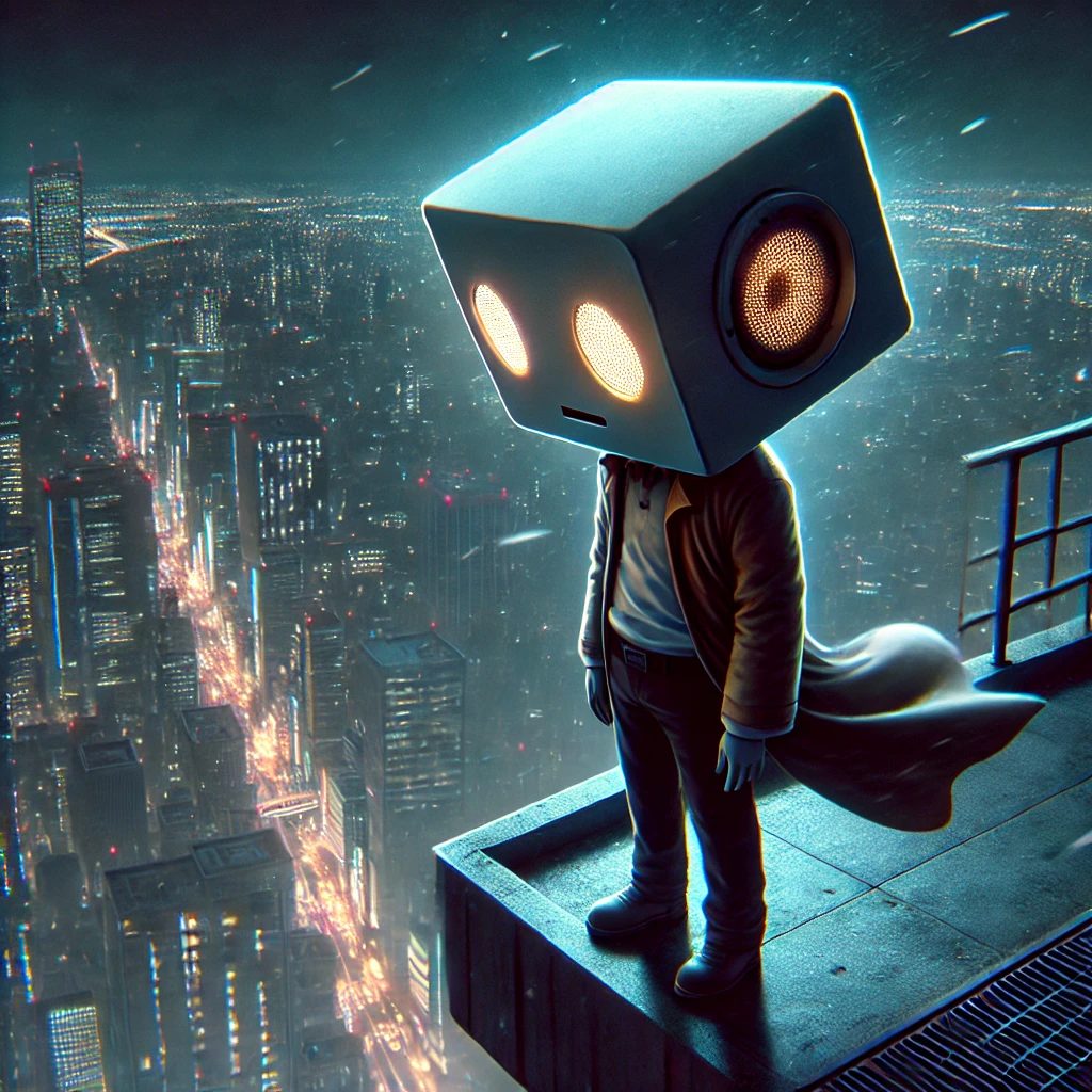 朝の光が部屋のカーテンの隙間から差し込み、四角いスピーカーの形をした頭が、目覚まし時計の音に合わせて揺れる。