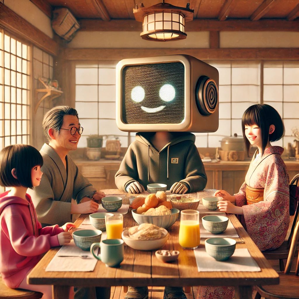 リビングに行くと、妹のユイがすでに朝食を食べていた。母はキッチンでコーヒーを淹れ、父は新聞を広げながらのんびりしている。たくちゃんは席につき、テーブルの上のトーストを一枚手に取った。