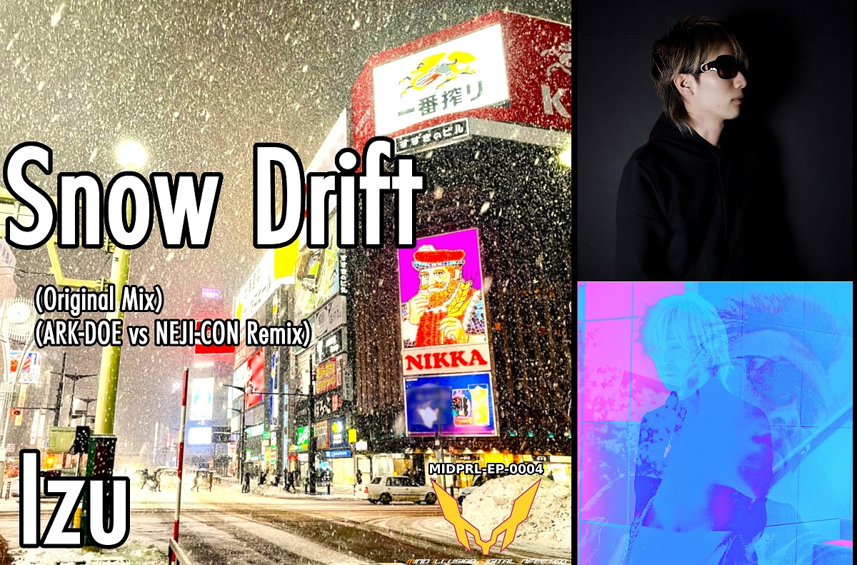 This EP features a 2025 remix of Izu’s 2009 trance track “Snow Drift.” The remix was created by ARK-DOE, a long-time Sapporo trance producer, and NEJI-CON of the music unit “H&Co.” who specialize in hyper dance sounds. The original track’s exquisite sense of stillness and movement, reminiscent of the north, is fused with ARK-DOE and NEJI-CON’s beautiful and upbeat sound to create a track more suited to the dance floor.