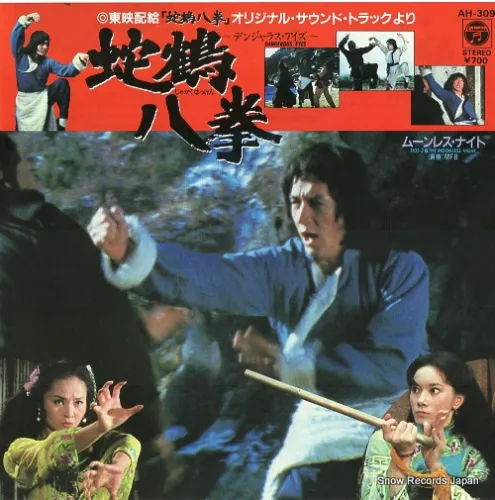 そこで、あれ?もしかして…と、既に鑑賞済&主題歌レコードも購入済だった『蛇鶴八拳』(1978/日本公開1983。もちろんジャッキー人気ブレイク後に輸入したかつての主演作)の曲のクレジットも確認してみると…やっぱり林センセイだ! (確かに杉オメのデビュー曲「SUMMER SUSPICION」1983 にそっくりだ)