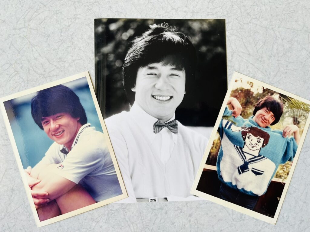 いやはや、この志田少年史におけるジャッキー映画主題歌騒ぎは、現在のようなネットもない時代、それはそれは巨体なる謎として立ちはだかっておりました。しかしこのような状況のウラには、尚のこと驚愕的な事実がはびこっていたのです。ジャッキー映画主題歌についての謎症例はまだまだあるので、今回はここまでにしておいて、次回へと続くこのコラム、初のシリーズ連載といきましょう。では、再来週の第二弾もお楽しみに。それまでは林センセイのジャッキーソングたちをいろいろ探して聴いてみてくださいませ…。ではおまけで志田所有の宝物、ジャッキー生写真をどうぞ(映画雑誌の付録だけどね)。