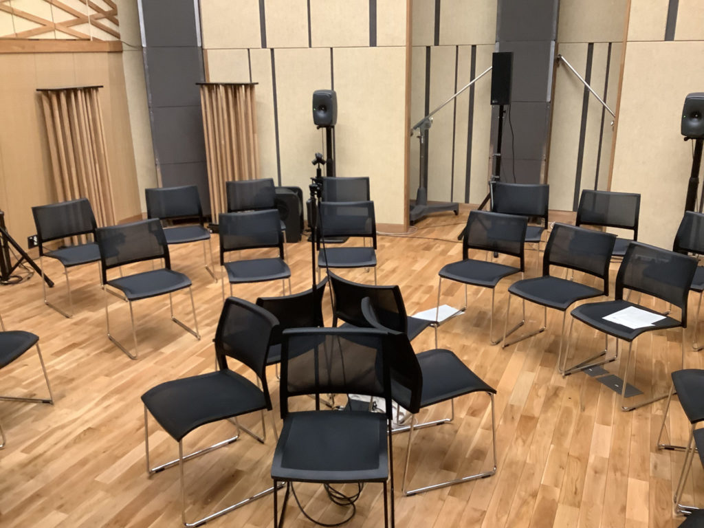 そううながされて、自分は開演当初収録用のマルチマイクが置かれているホール中心部に座席をとっていたのだが、この機になんとなく音響室内の入り口に近い前方の座席に移動してみることにした。